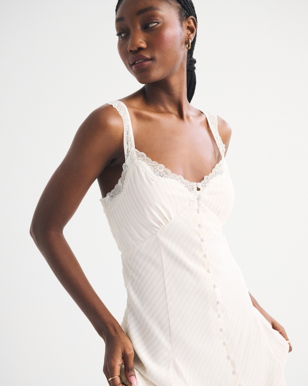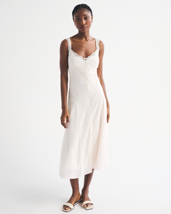 Bra-Free Lace-Trim Button-Through Midi Dress