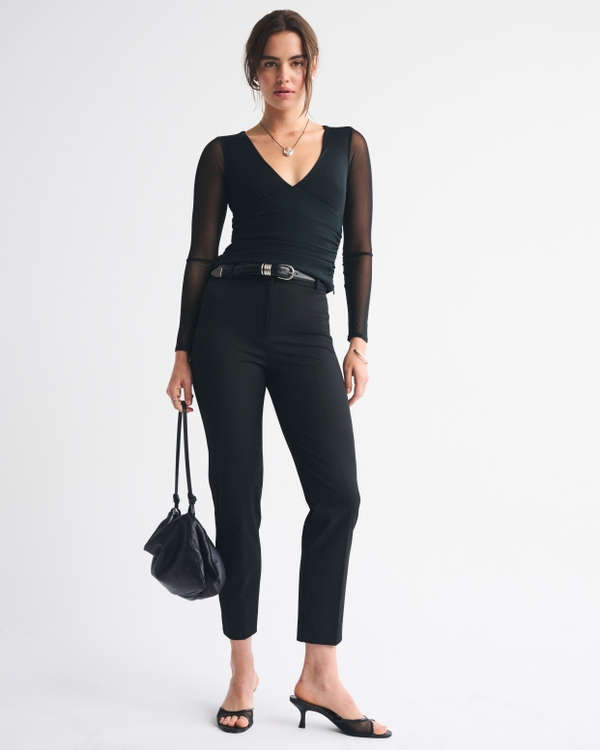 Bra-Free Long-Sleeve Mesh Plunge Top