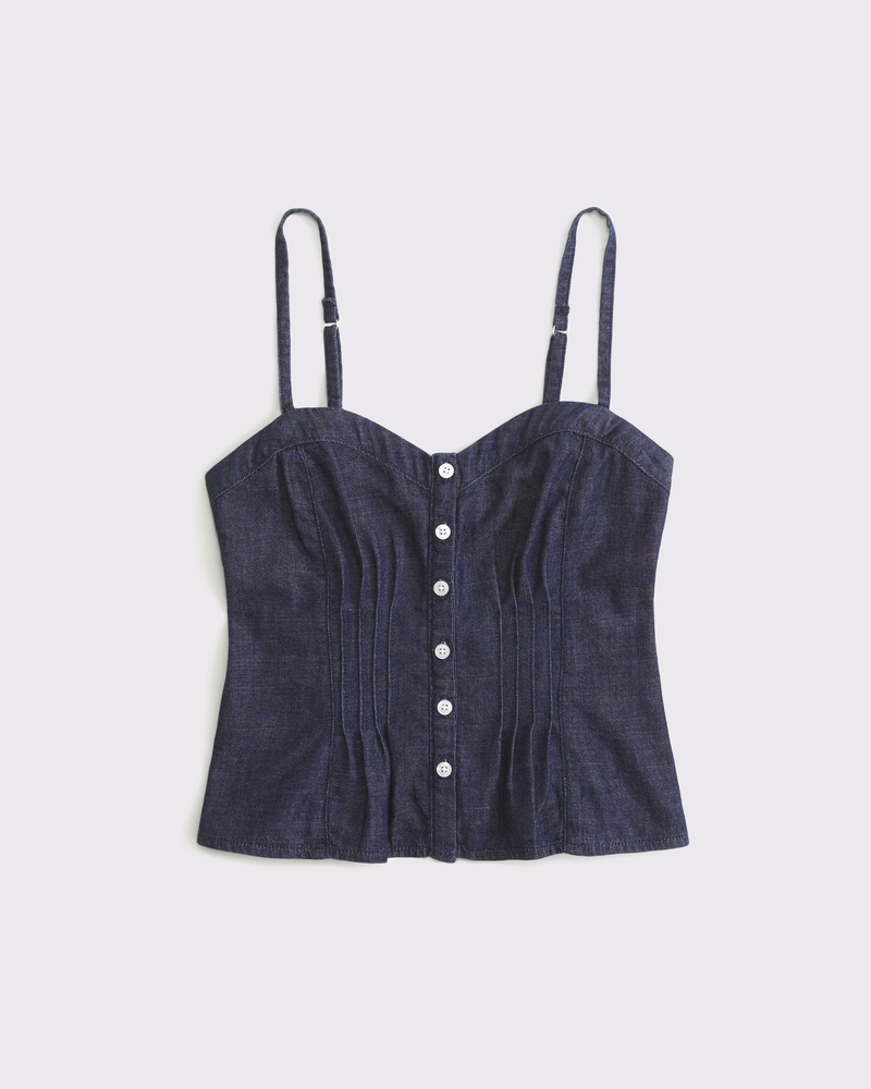 Our new collection built to make going bra-free that much smoother. This slim-fitting cami top is in our soft chambray fabric. Features a button-through detail, sweetheart neckline, pintucks details along the bodice and adjustable straps. Imported.