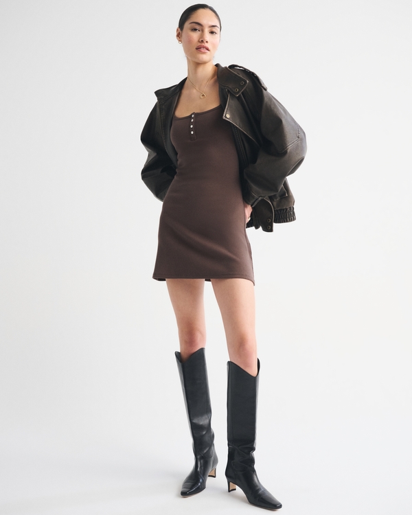 Bra-Free Rib Henley 90s Cami Mini Dress