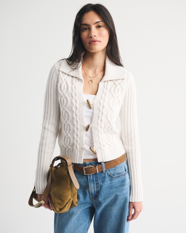 Cable-Knit Collared Cardigan