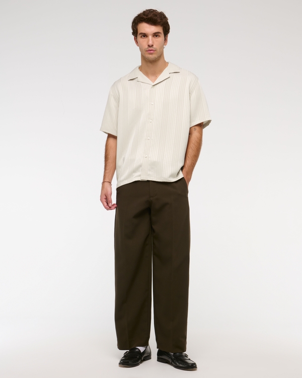 Camp Collar Textured Button-Up Shirt