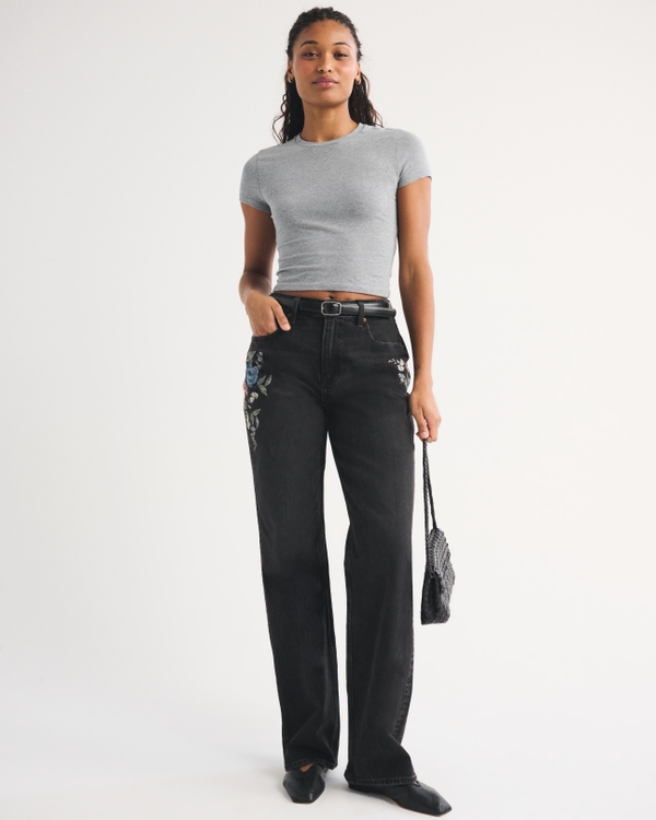 Curve Love High Rise 90s Relaxed Floral Embroidered Jean