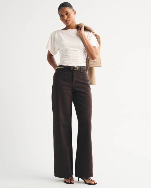 Curve Love High Rise Wide Leg Brown Jean