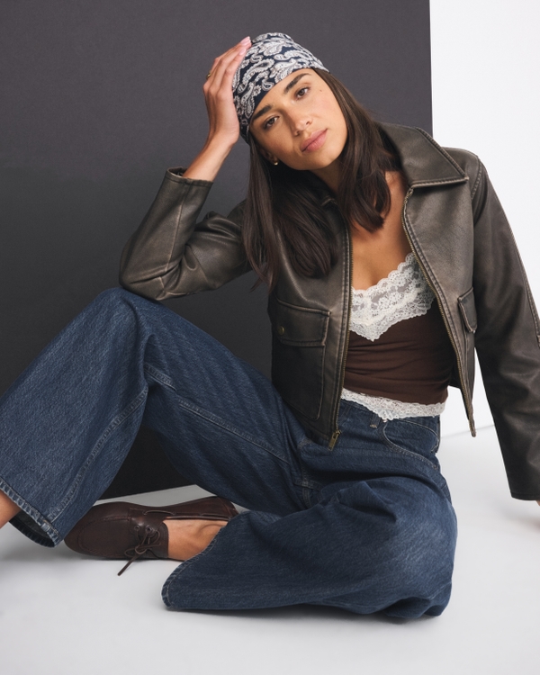 Our Curve Love ultra loose jeans in a dark tinted wash with a clean hem. This fit features a low rise, is relaxed at the waist and hips and eases at the thigh into an ultra loose leg shape with a full-length inseam. We recommend buying your true size for a baggier fit. Size down for a closer fit. The viral fit that eliminates waist gap: Curve Love features additional room through the hip and thigh for curve-hugging comfort. This jean is made from our Drapey Rigid denim, a super soft authentic cotton fabric with no stretch. Imported.