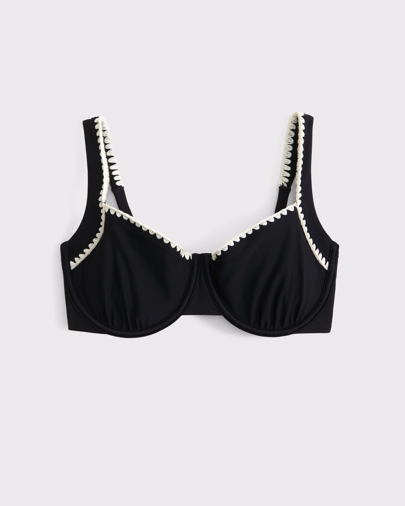 Our classic underwire bikini top in our core swim fabric and Curve Love fit, designed for cups D-F. Curve Love includes fuller bust support with a proportionally smaller band size. Our classic underwire bikini top in our core swim fabric. Features unlined cups, flattering and adjustable wide straps, blanket stitching details throughout and back hook closure. Imported.