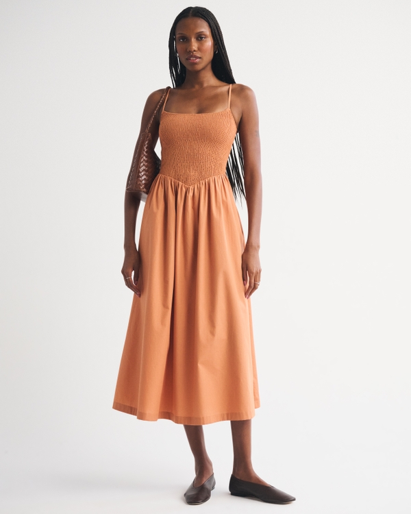 A&F Sydney Smocked Dipped-Waist Midi Dress