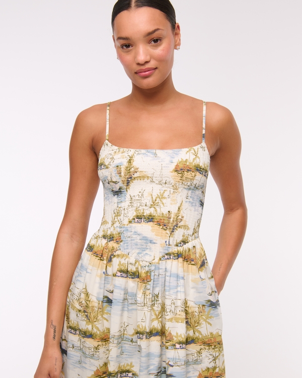A&F Sydney Smocked Dipped-Waist Midi Dress