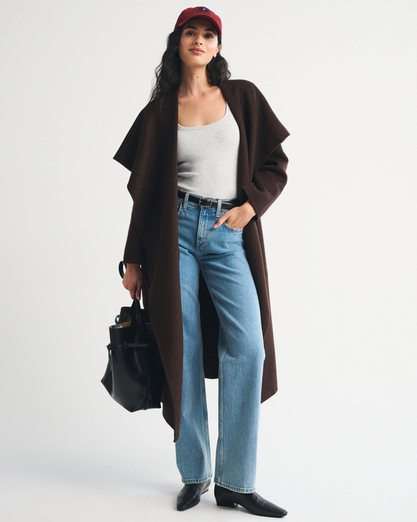 Our new long coat in a double-cloth wool-blend fabric with an adjustable shawl collar design that can be worn open or closed. Featuring a belt at the waist, non-closure design and side pockets. Imported.