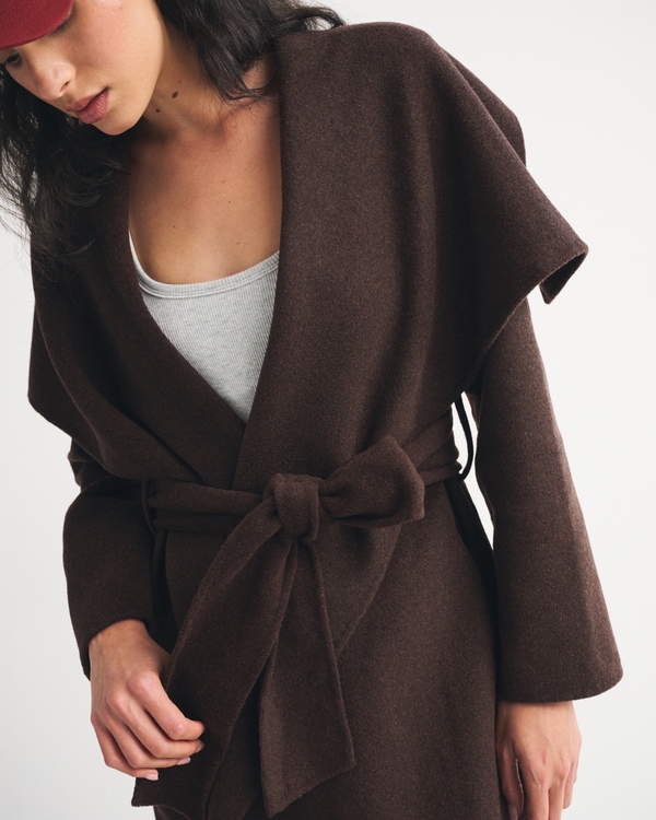 Double-Cloth Wool-Blend Wrap Coat