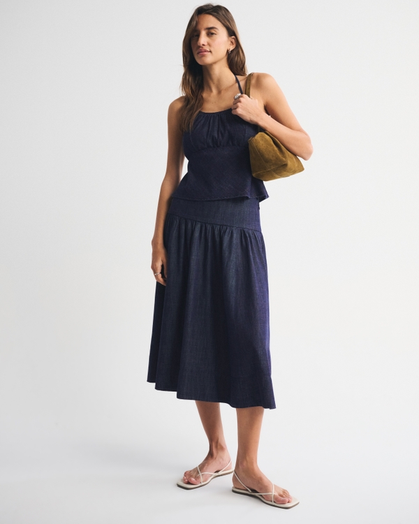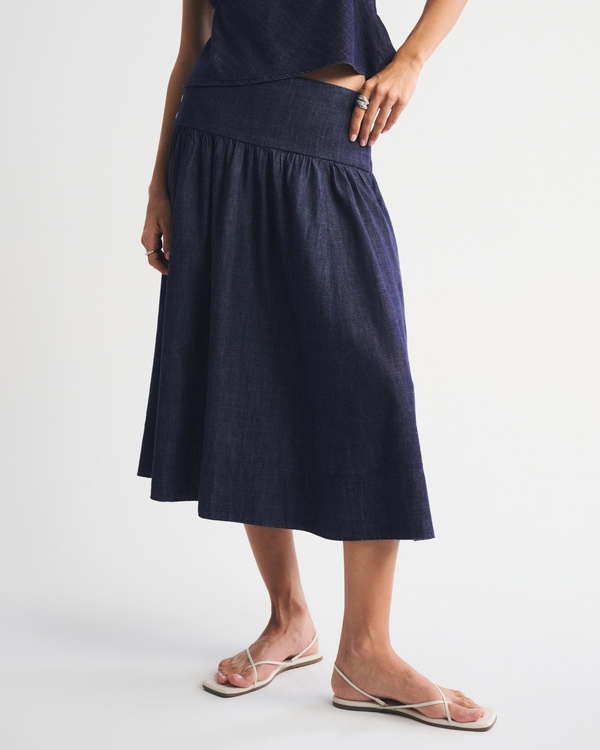 Drop-Waist Side-Button Midi Skirt