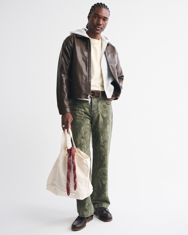 Comfortable trucker-style jacket in our soft vegan leather fabric and a relaxed-fit silhouette. Features side pockets, zip-up front, classic fold-down collar and lightweight interior lining. Imported.