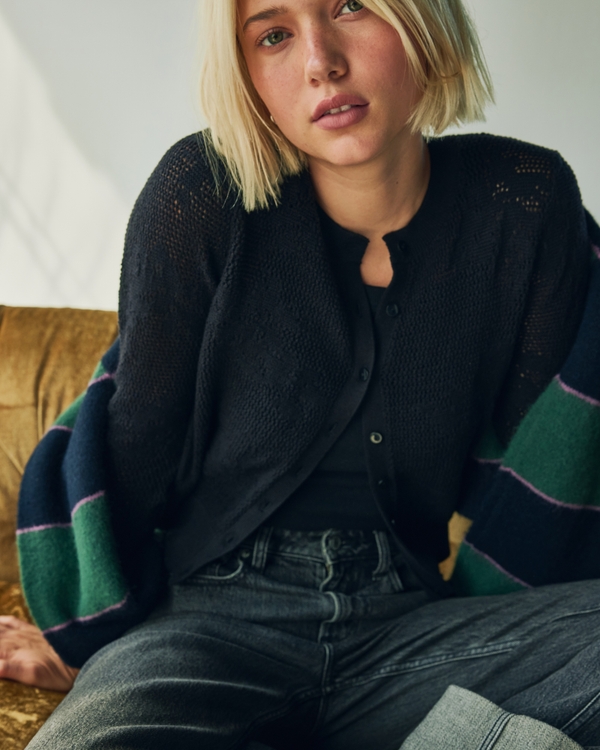 Floral Open-Stitch Cardigan