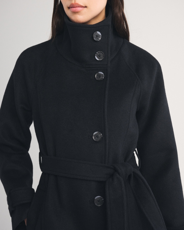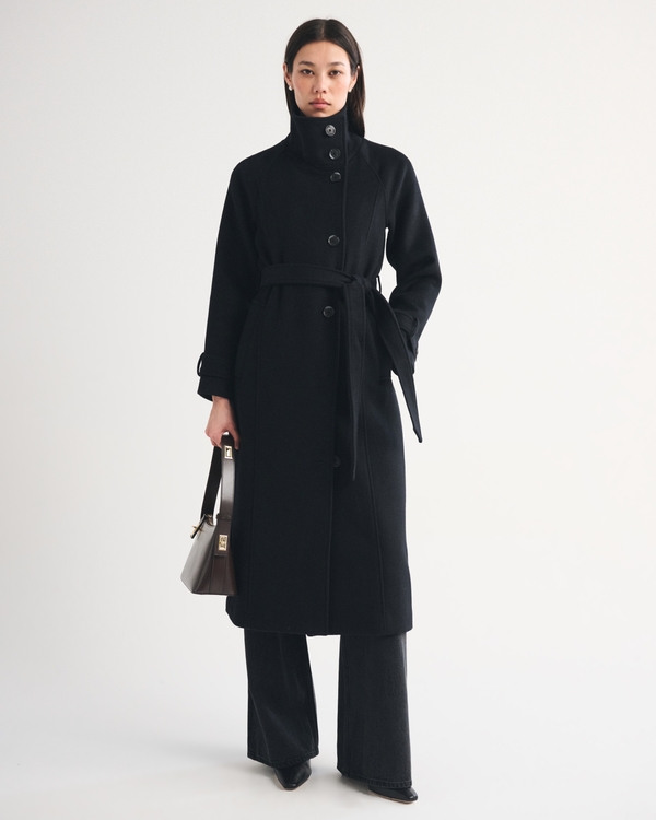 Funnel Neck Wool-Blend Long Coat
