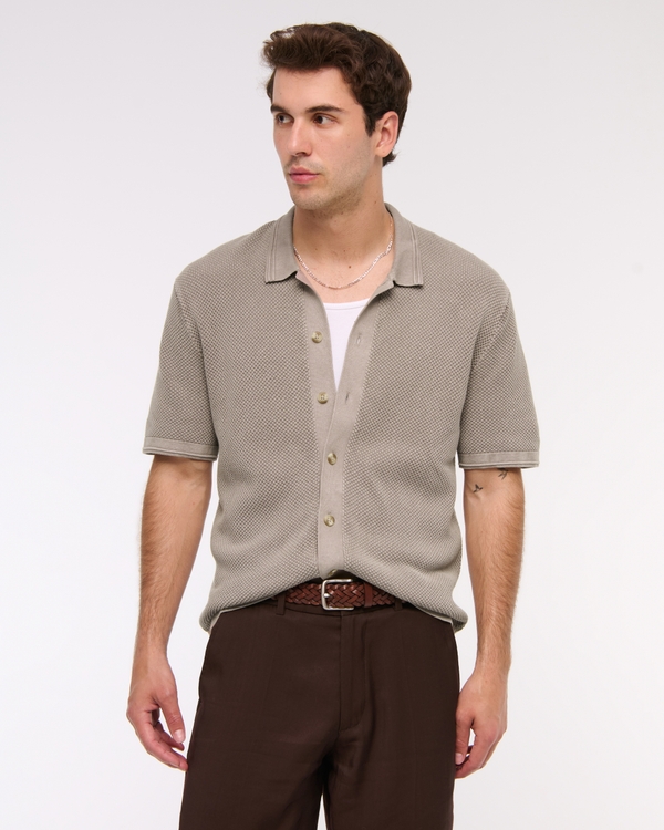Garment Dye Button-Through Sweater Polo