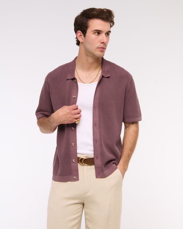 Garment Dye Button-Through Sweater Polo