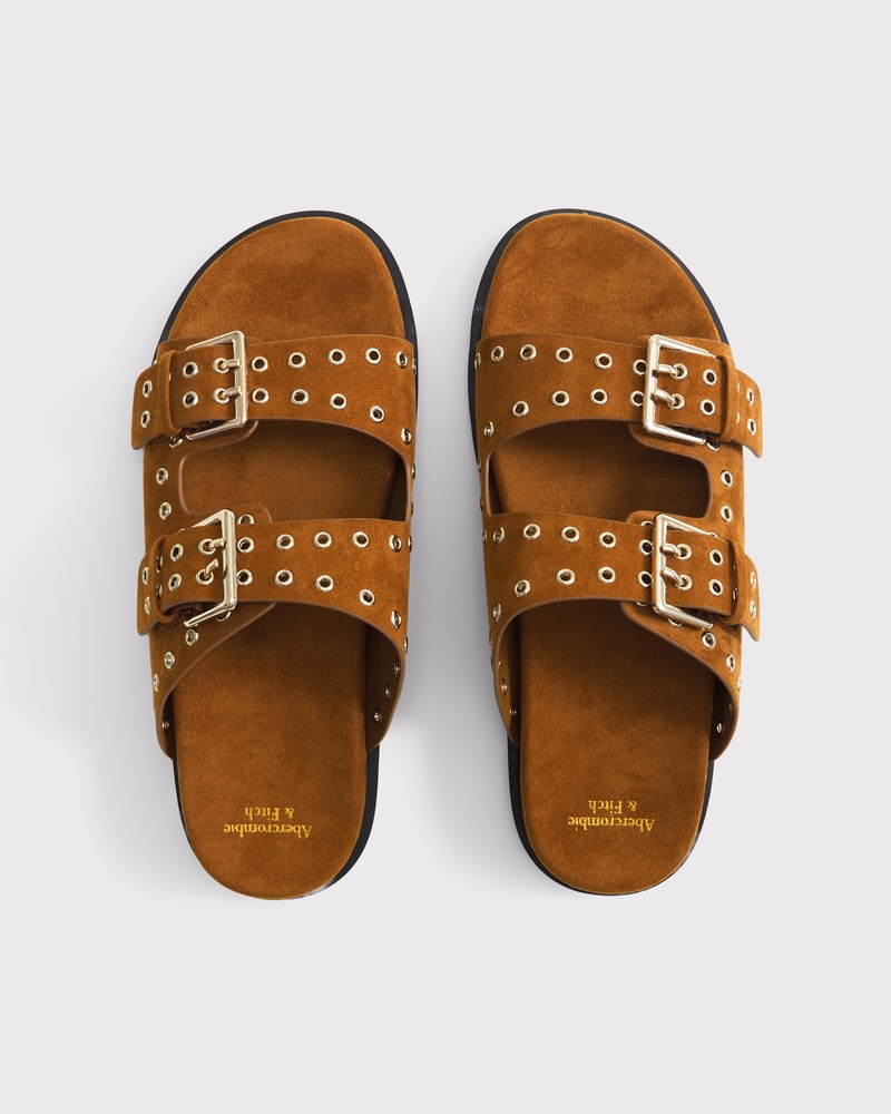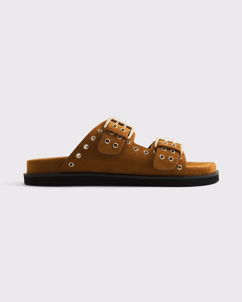 Vegan Suede Grommet Footbed Slide Sandals