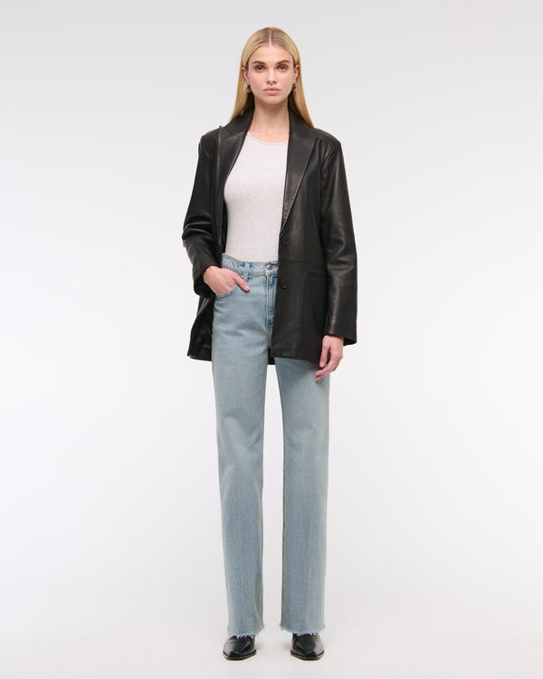 Our classic 90s relaxed fit in a light tinted wash with a raw hem. Features a high rise that is fitted at the waist through the seat to show off your best butt. Eases open through the thigh into a full-length, relaxed leg shape. Made from our Vintage Comfort Stretch fabric with structure and slight stretch. Imported.