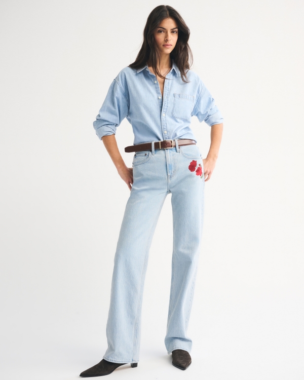 Our classic fit denim is measured straight through the hip, thigh, and waist.