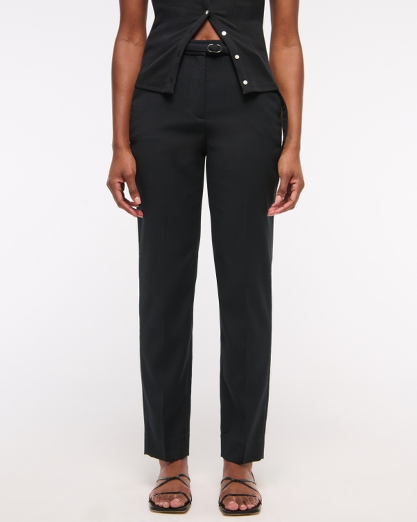 High Rise Belted Ankle Straight Pant