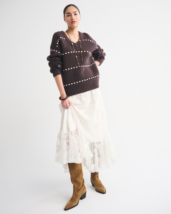 High rise maxi skirt in our soft mesh fabric. Features embroidered details throughout, a flowy bodice and an elasticated pull-on style waistband for a secure fit. Imported.