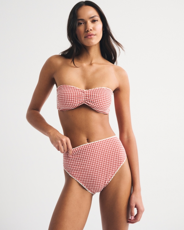 Our high-waist moderate coverage bottoms in our gingham swim fabric. Features a high rise fit and a flattering high-leg cut. Moderate provides an additional 1.5 inches in coverage than our cheeky bottoms. Imported.