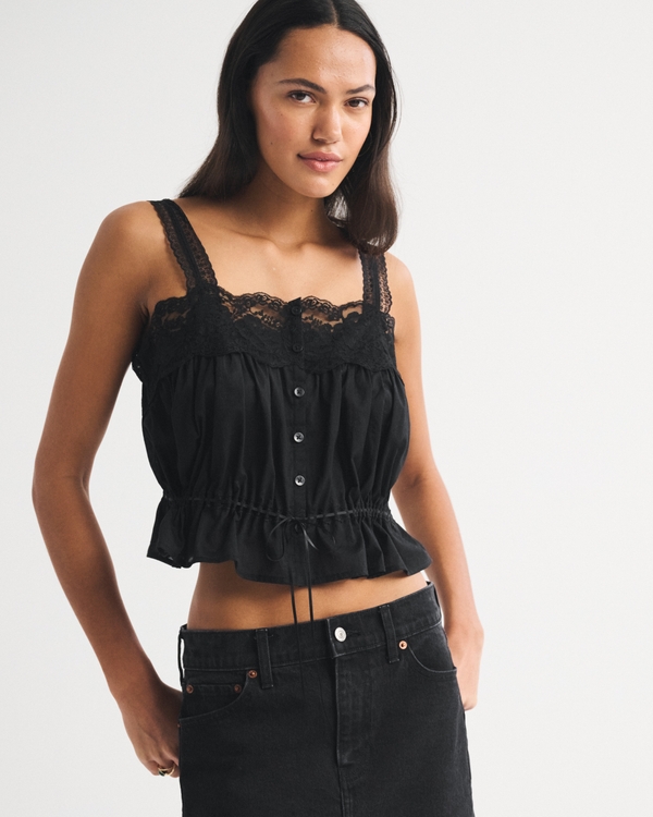 Lace-Trim Button-Through Cinched Cami