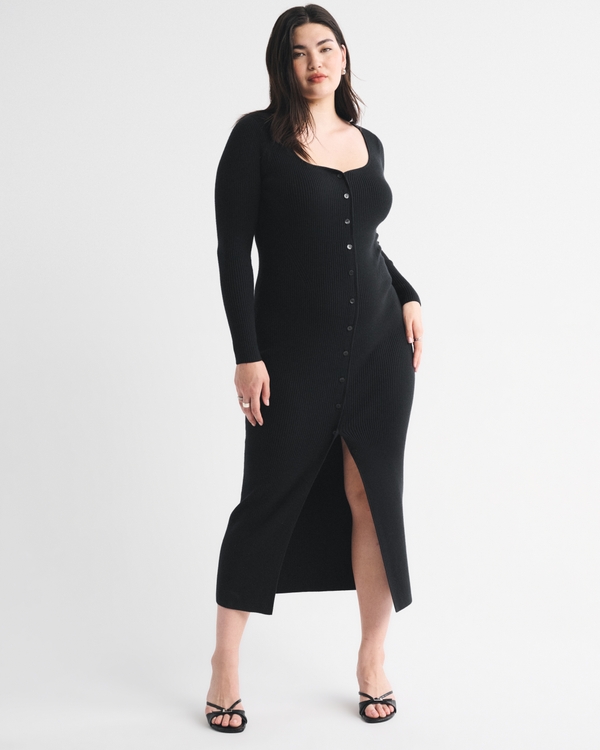 Long-Sleeve Button-Through Maxi Sweater Dress