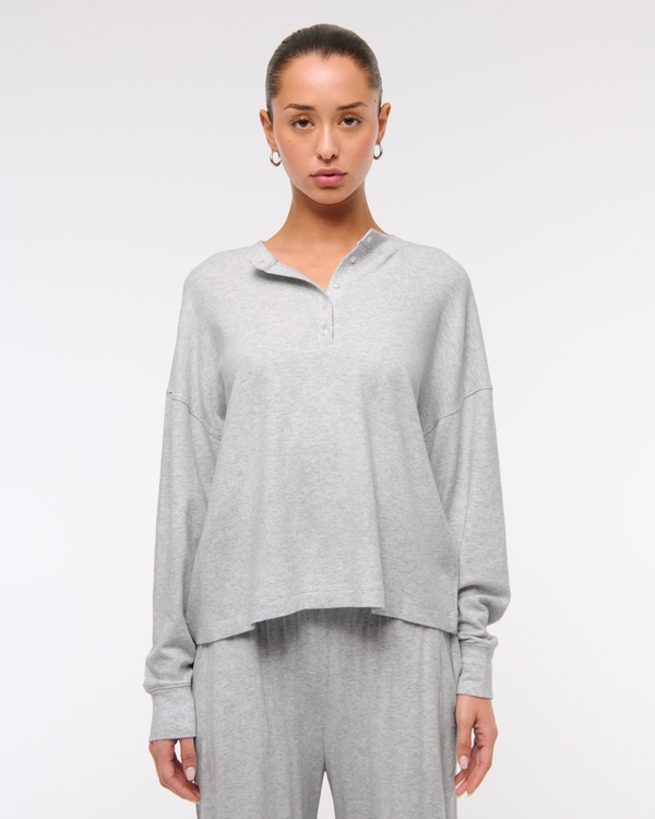 Long-Sleeve Cozy Lounge Knit Oversized Henley Top