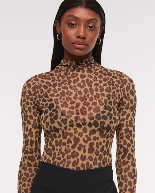 Long-Sleeve Mesh Mockneck Top