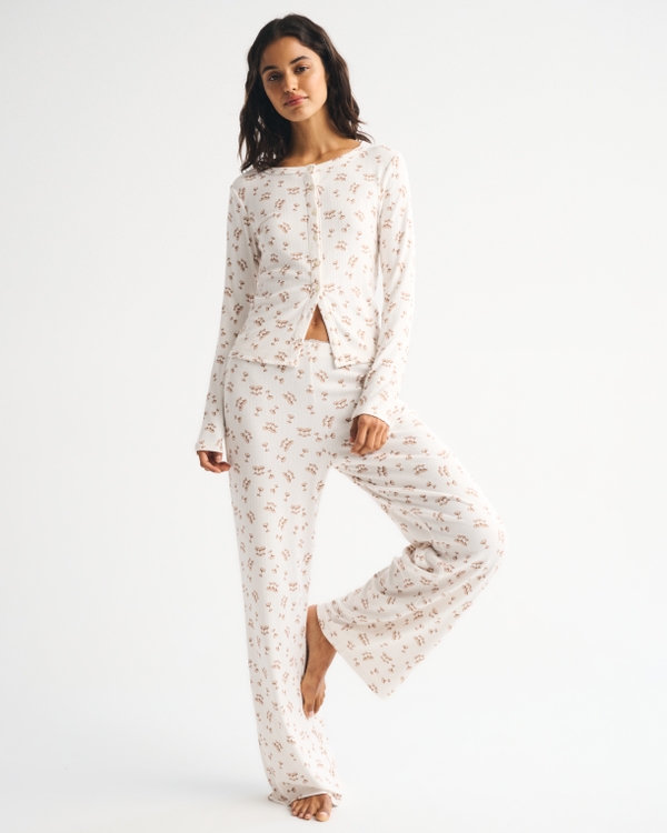 Long-Sleeve Pointelle Sleep Top