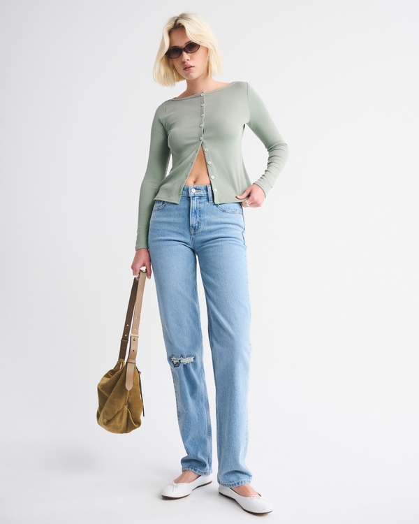 Long-Sleeve Slash Button-Through Top
