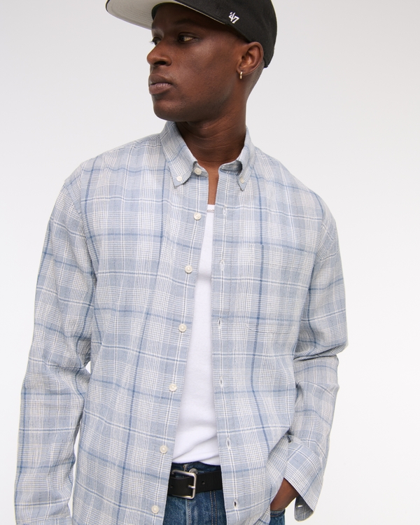 Long-Sleeve Textural Plaid Button-Up Shirt