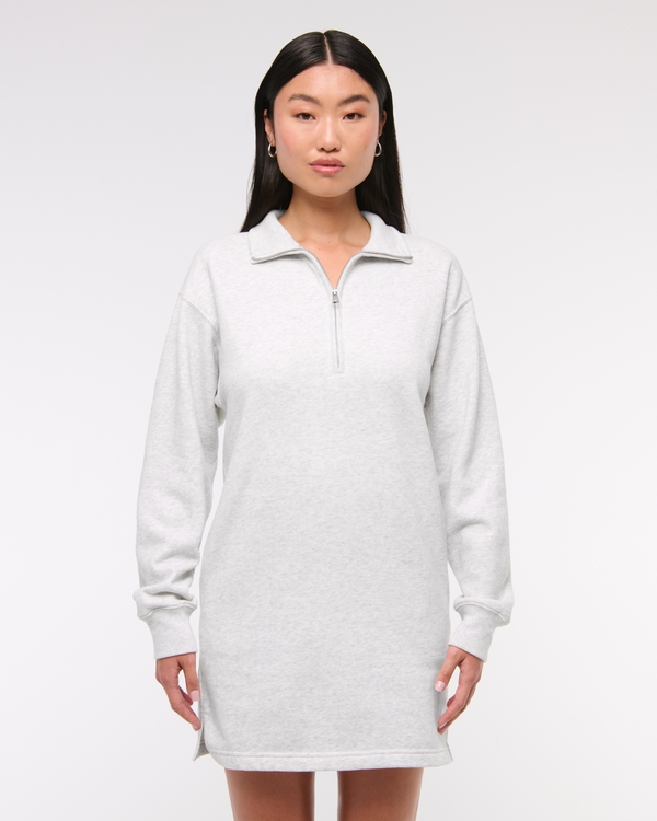 Long-Sleeve Zip-Up Fleece Mini Dress
