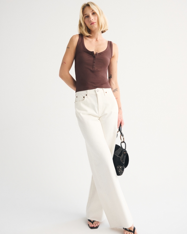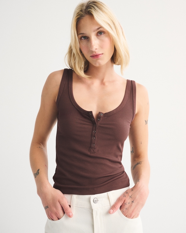 Slim-fitting henley tank in our lightweight softAF rib fabric. Features snap-up scoop neckline and all-over ribbed detail. Imported.