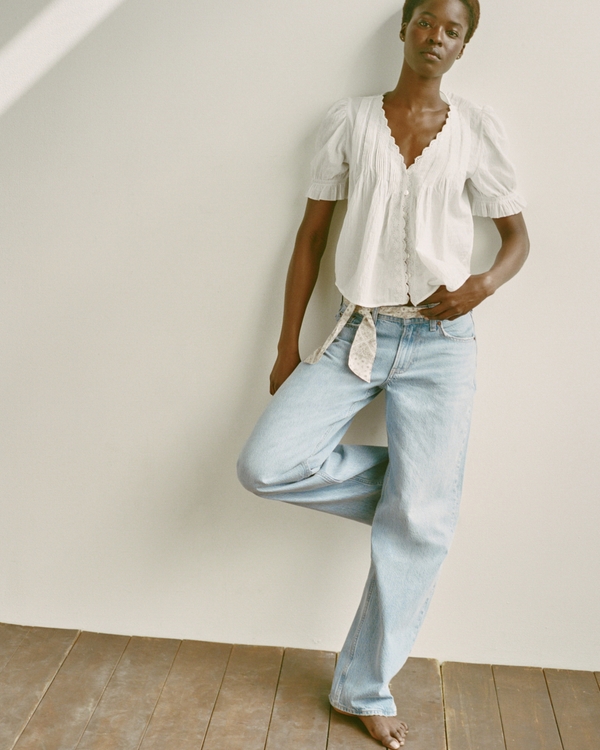 Our classic fit denim is measured straight through the hip, thigh, and waist.