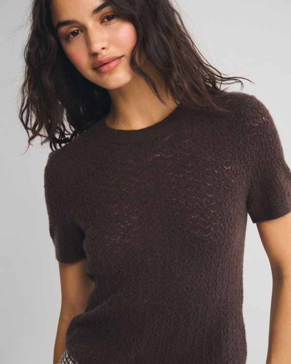 Easy-fitting short-sleeve tee in our soft merino wool-blend yarn fabric. Features a crew neckline, pointelle ribbed stitching details throughout and rib trims at at the neckline, hem and cuffs. Imported.