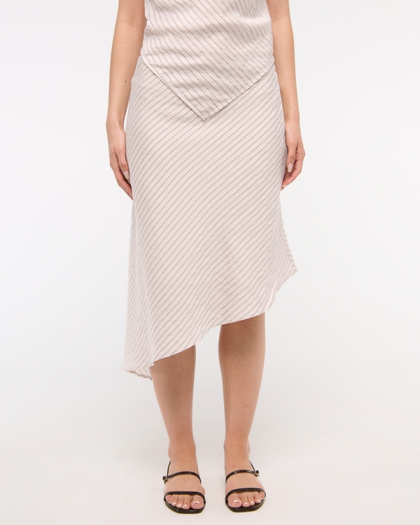 Our new mid rise midi skirt in our soft woven fabric, featuring a flowy silhouette, on-trend asymmetrical hem and side zipper closure for a secure fit. Imported.