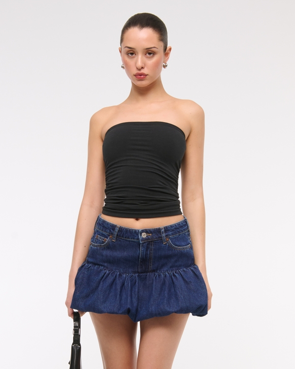 Mid Rise Bubble Hem Denim Micro Skirt