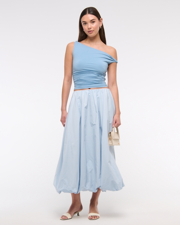 Mid rise maxi skirt in our soft poplin fabric, featuring on-trend bubble hem and an elasticated waistband for a secure fit. Imported.