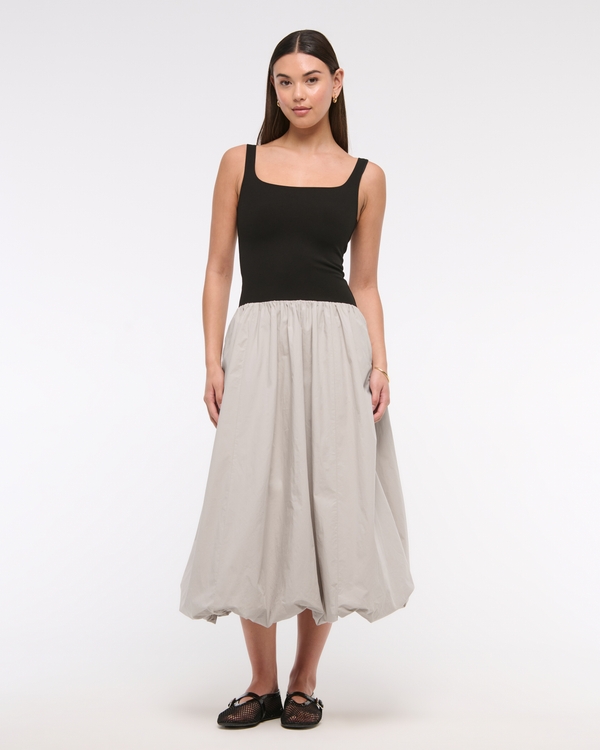 Mixed Fabric Bubble Hem Midi Dress