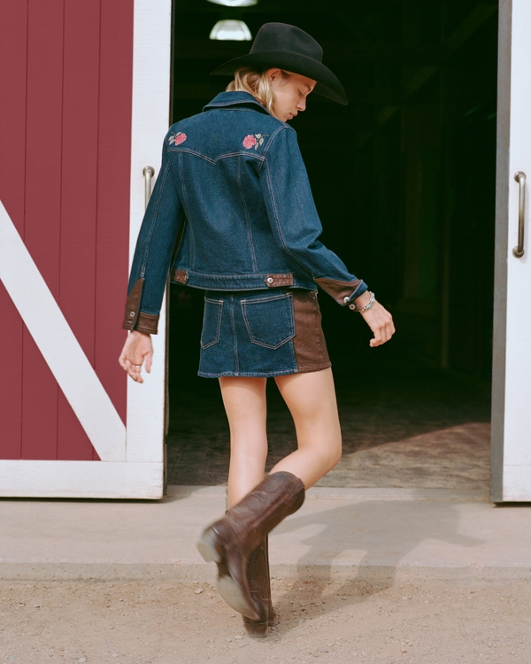 Mixed Fabric Denim Mini Skirt