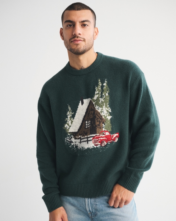 Oversized Holiday Graphic Crew Sweater