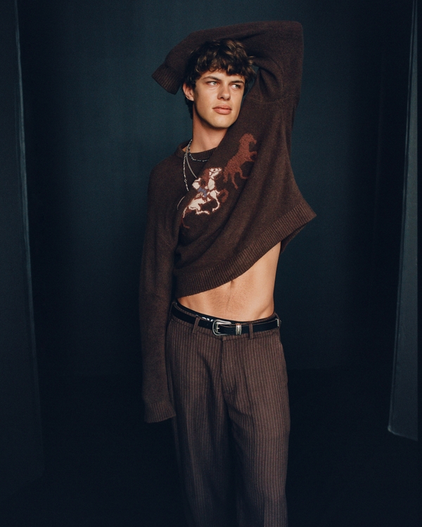 Oversized Western Graphic Crew Sweater