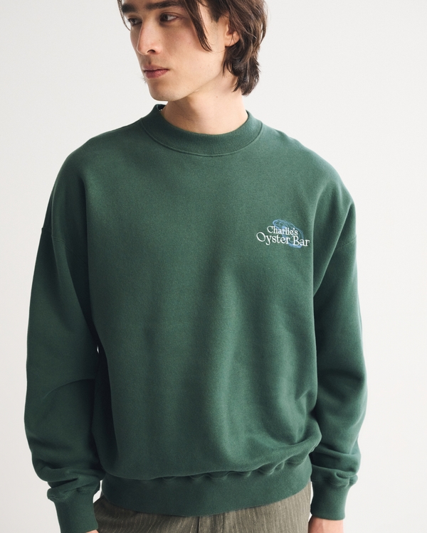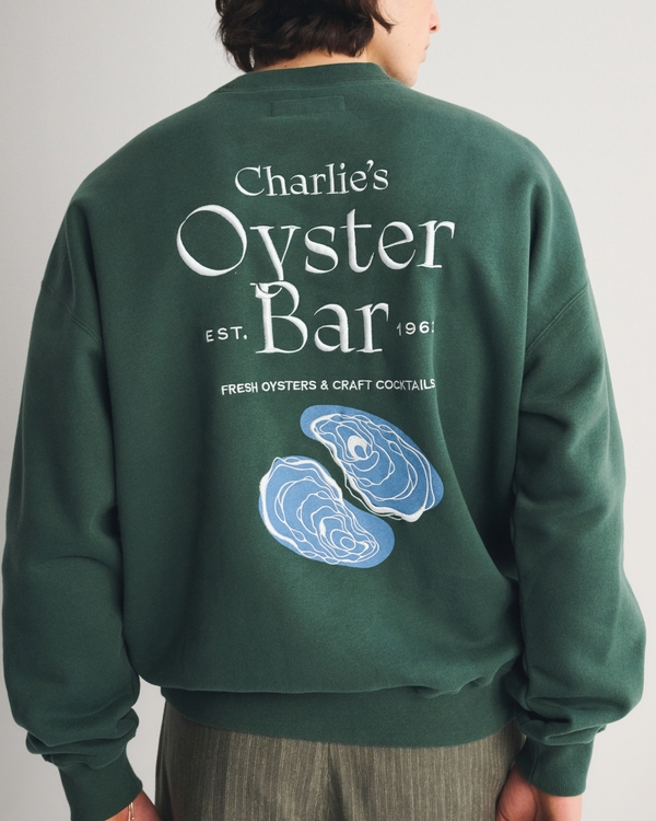 Classic sweatshirt in our softAF fleece fabric and oversized-fit silhouette. Features oyster bar-inspired graphic details at left chest and back, crew neckline and banded hem and cuffs. Imported.