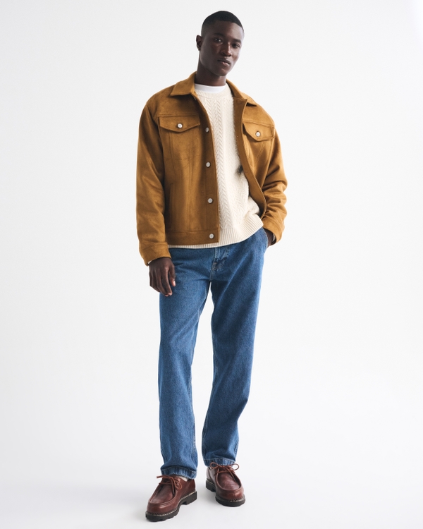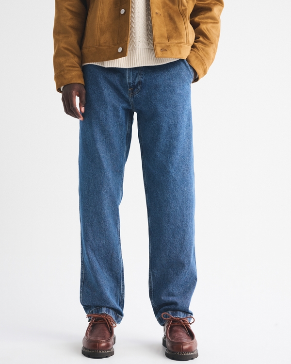Our new loose trouser that is relaxed through the thigh and straight leg, made in our 100% cotton no-stretch fabric and broken-in denim feel. Features a dark wash and clean hem. Imported.