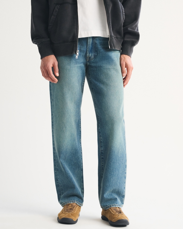 Our relaxed straight fit that is relaxed through the thigh and straight leg with no taper, made in our 100% cotton no-stretch fabric and broken-in denim feel. Features a tinted medium wash and clean hem. Imported.