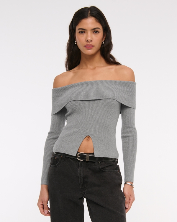 Ribbed Off-The-Shoulder Cutaway Sweater