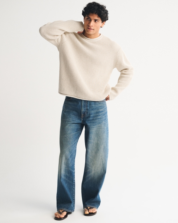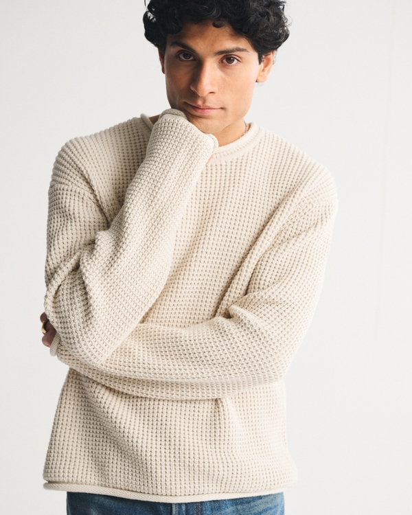 Easy-fitting sweater in our soft 100% cotton sweater-knit fabric and oversized-fit silhouette. Features a rolled crew neckline and banded hem and cuffs. Imported.
