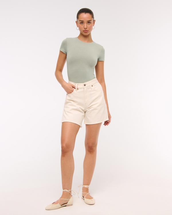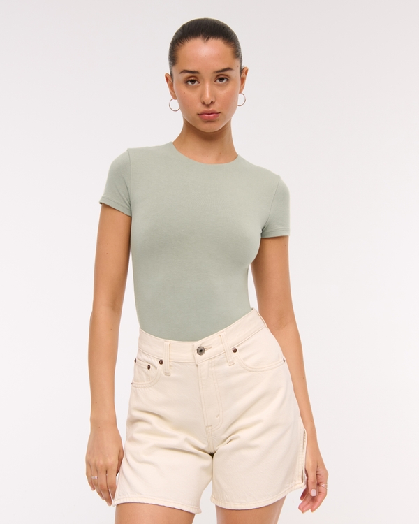 Slim-fitting short-sleeve bodysuit in our double-layered softAF cotton-blend seamless fabric, featuring crew neckline and two-snap bottom closure. Our cotton-blend seamless fabric is an ultra soft, brushed jersey fabric, that gives you a casual seamless look! Imported.